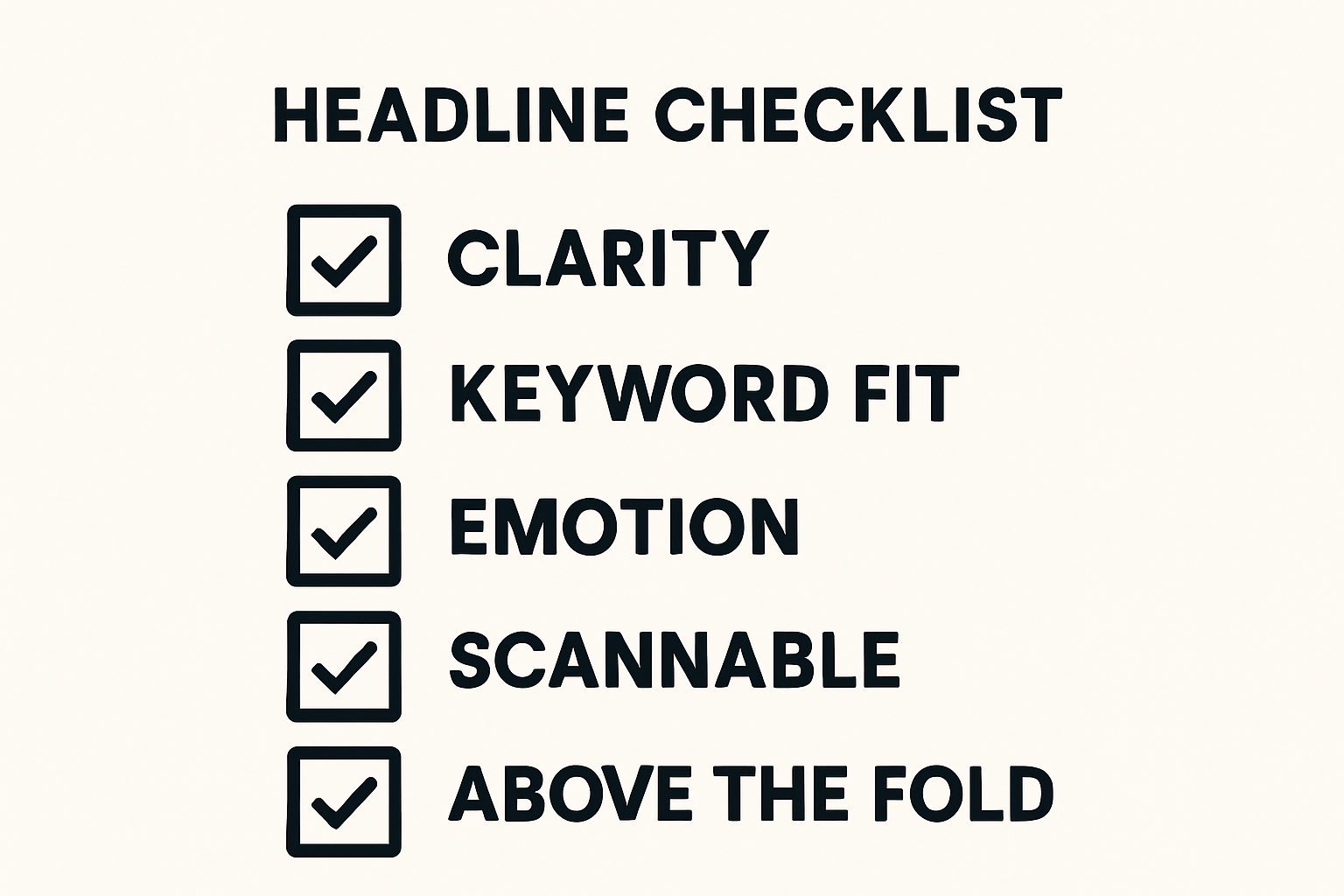 SEO and CRO checklist: Clarity → Keywords → Emotion → Scannability → Above-the-fold