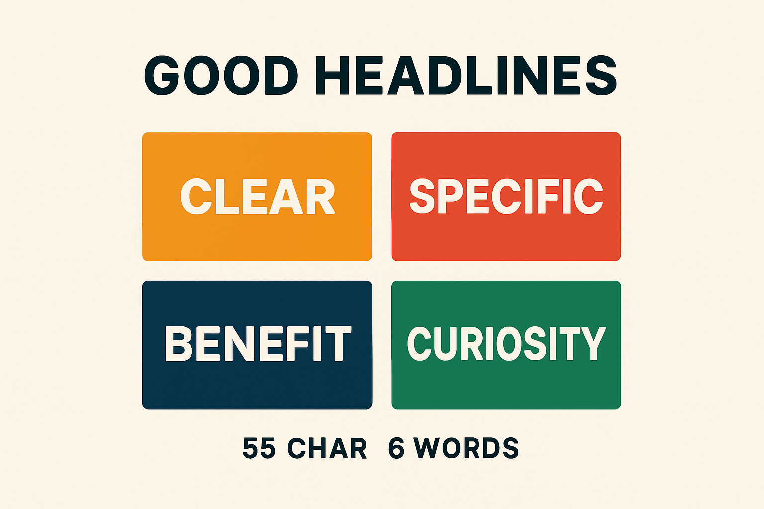 Definition: A good headline is simple, specific, and benefit-led. It clarifies value in seconds and sparks just enough curiosity to earn the next click.